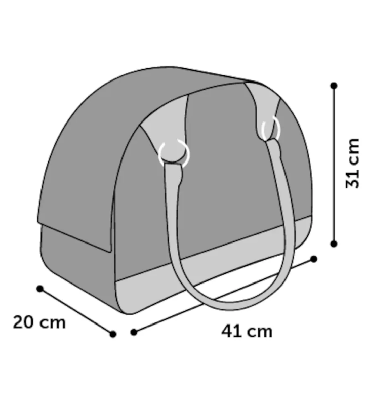 All'interno ha un corto guinzaglio per evitare che il cane salti fuori quando lo si tiene aperto. Ha i piedini per essere poggiata a terra senza sporcarsi.