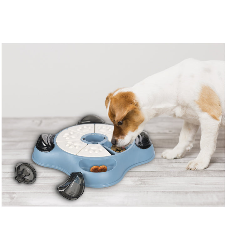 Il cane deve togliere i coperchi e farlo roteare per scoprire i premi.