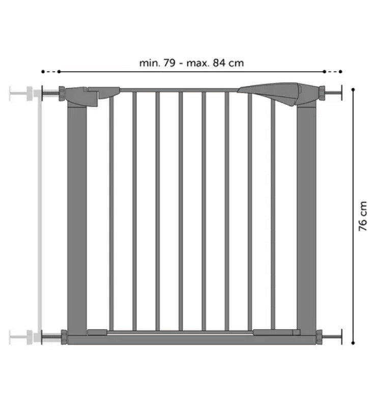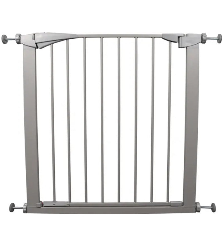 La porta metallica a battente si apre da entrambi i lati. La chiusura di sicurezza può essere aperta e chiusa con una sola mano.