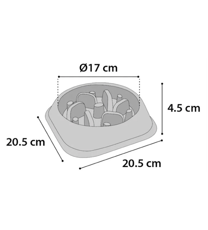 Questa ciotola ha una capacità di 0,5 litri e un diametro di 17 cm.