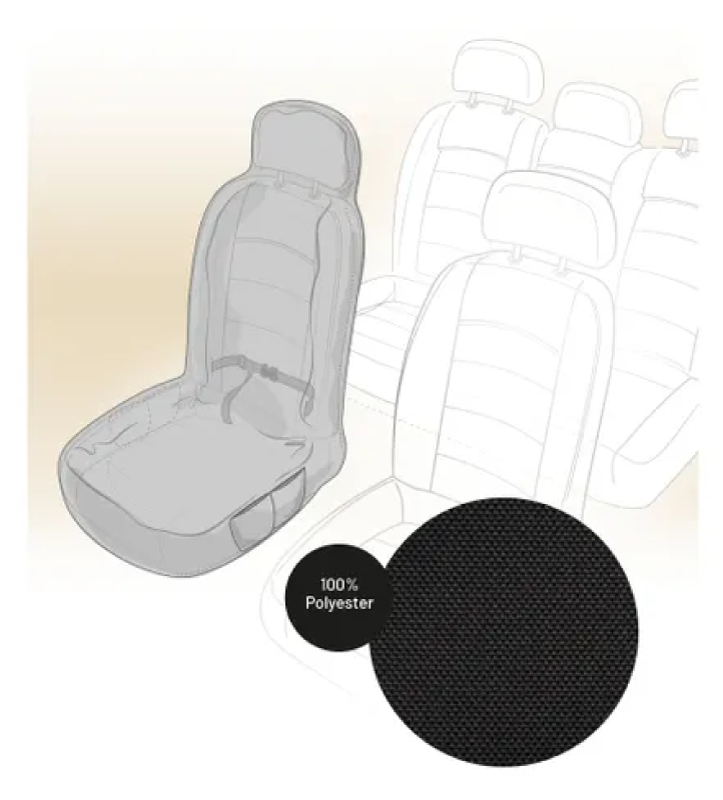 Coprisedile per un sedile singolo anteriore. Facile da fissare con elastico e fibbia a scatto al sedile.