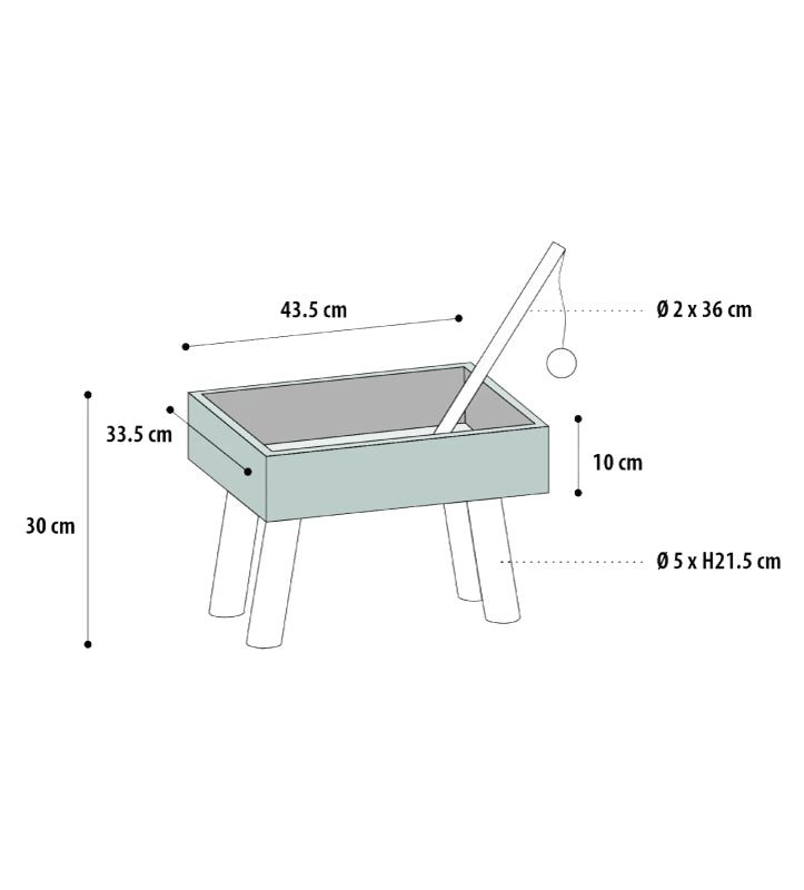 Le misure sono: lunghezza 43.5 cm, altezza totale 30 cm, altezza della cuccia 10cm, profondità 33.5 cm.