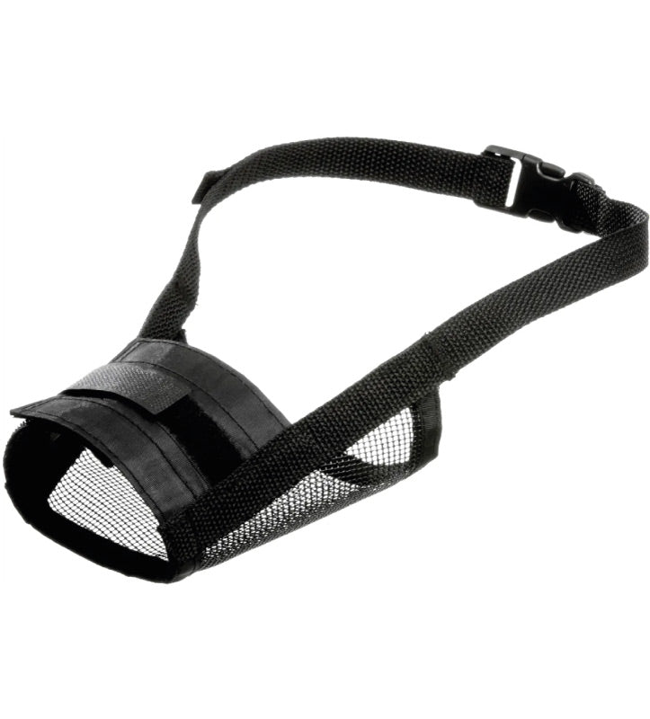 Il cinturino del collo è regolabile con fibbia a scatto e anche la circonferenza del muso è regolabile.