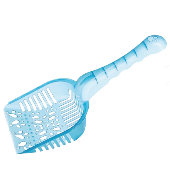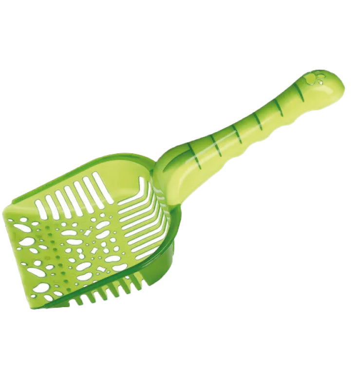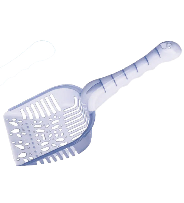 Paletta in plastica per lettiera in plastica con apertura a maglia sottile.