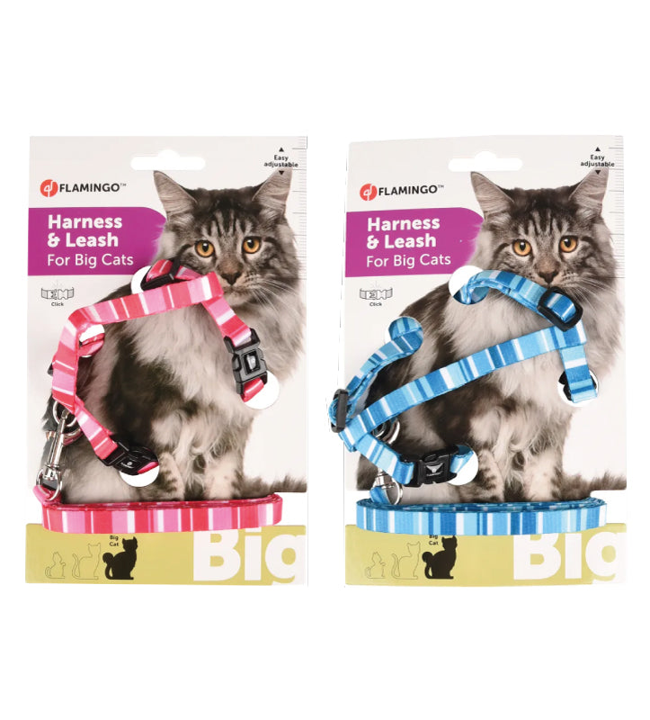 Pettorina per gatti grandi in nylon. Con guinzaglio.