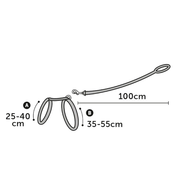 La misura della circonferenza addominale è 35-55 cm; la circonferenza del collo è 25-40 cm. La lunghezza del guinzaglio è 1m