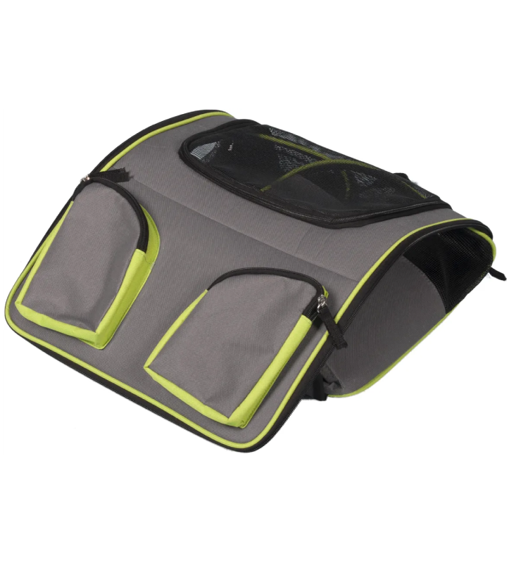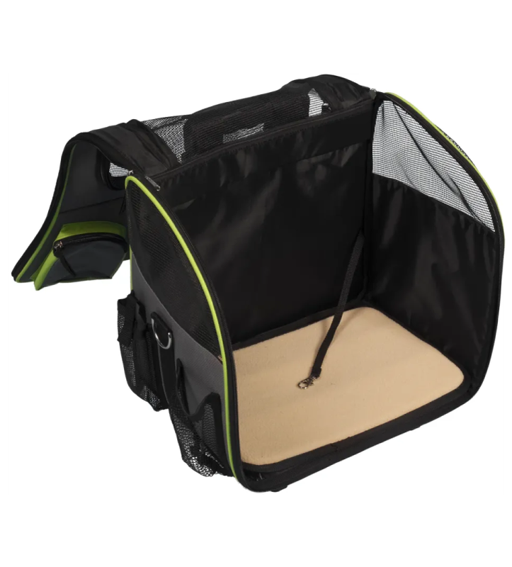 Aperture con cerniera lampo su lato anteriore e lato superiore. E' possibile tenerlo aperto nella parte superiore per permettere all'animale di mettere la testa fuori.