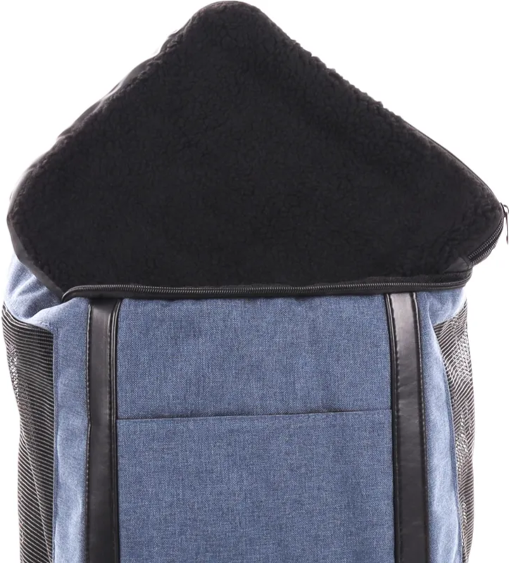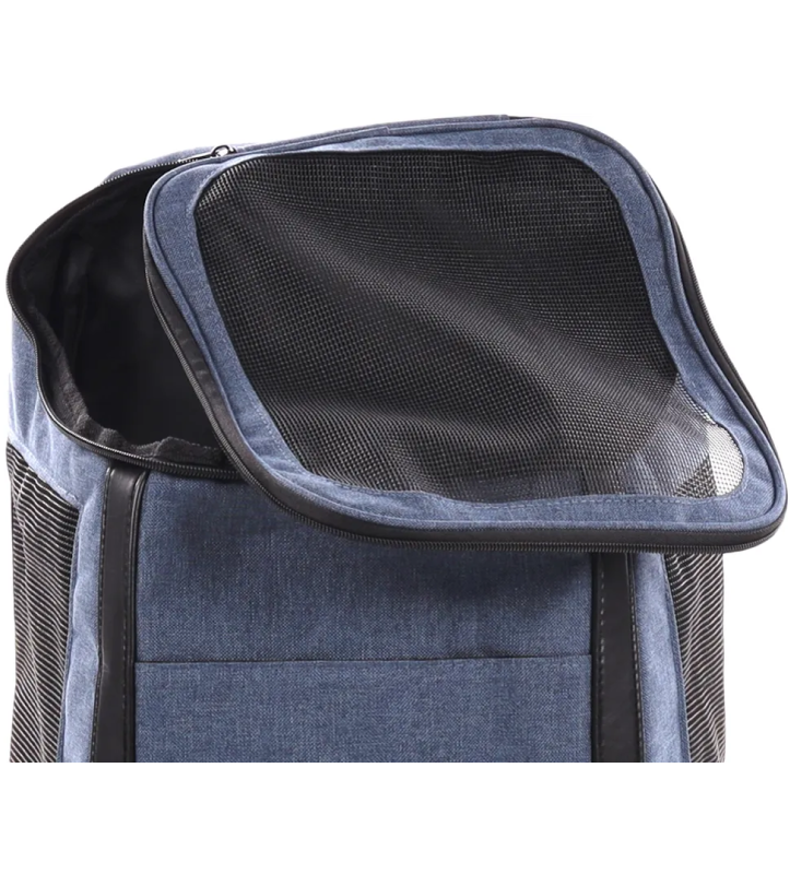 All'interno ha un corto guinzaglio per evitare che il cane salti fuori quando lo si tiene aperto.