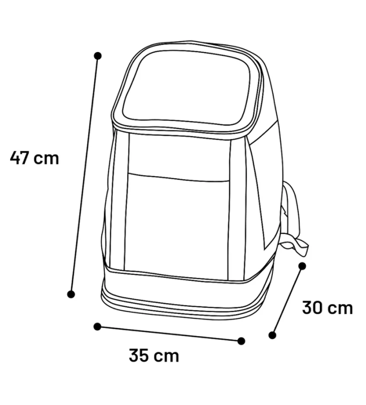 Il telaio e la parte posteriore sono rinforzati e può essere collegato a un carrello. Ha le aperture con cerniera lampo su lato superiore e parte inferiore