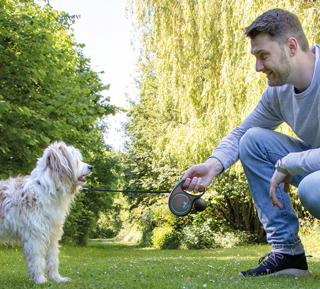 Guinzaglio avvolgibile di alta qualità e maneggevole, con sistema frenante a corsa breve, regolazione della maniglia e connessione per cambio cinghia.