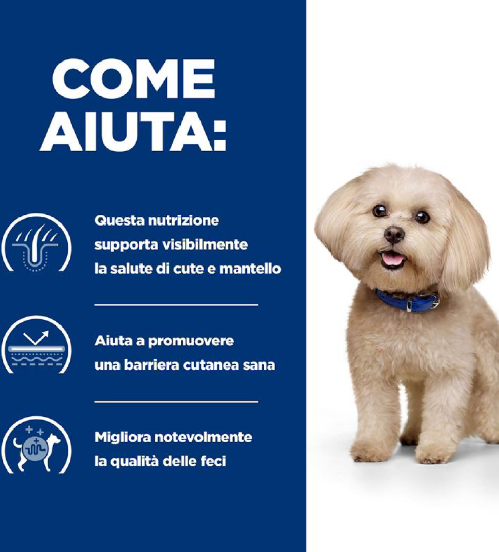 Formula migliorata, arricchita con la tecnologia ActivBiome+ di Hill's, una miscela brevettata di prebiotici, clinicamente dimostrato nel nutrire rapidamente il microbioma intestinale per supportare la salute e il benessere dell'apparato digerente.