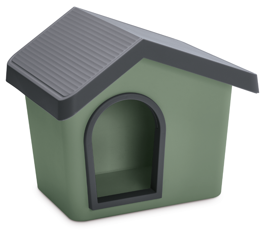 Cuccia per cani in polipropilene atossico riciclato, stabile e resistente, per riparare dalla pioggia durante le giornate più fredde e umide e dal sole d’estate.