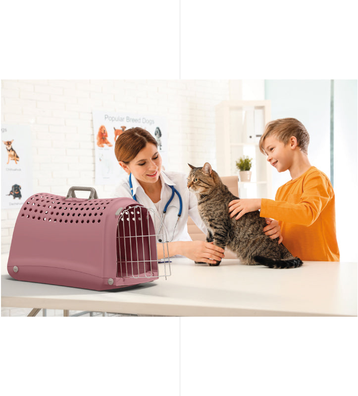 Il trasportino per cani e gatti Linus in plastica dal design elegante, offre al tuo Pet il massimo confort sia per tragitti lunghi o semplicemente per andare dal veterinario. Adatto a gatti e cani di piccola taglia è realizzato in plastica riciclata atossica resistente.