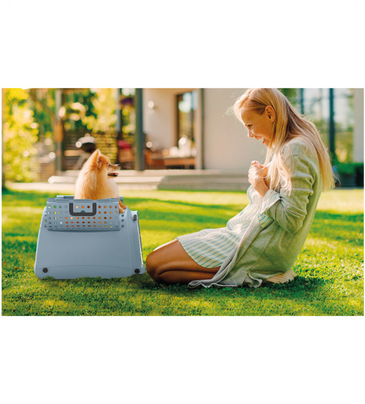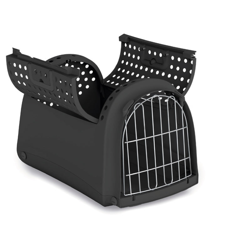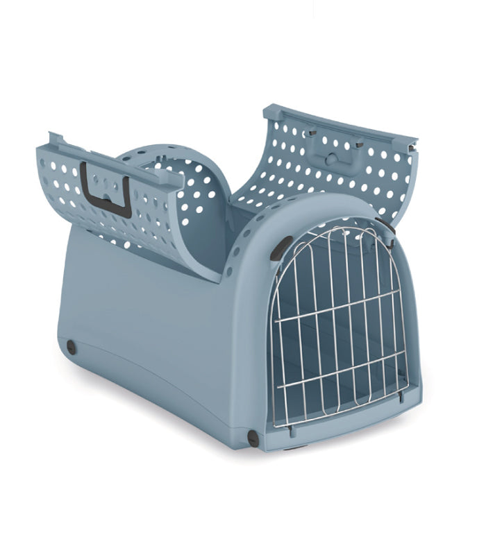 Con doppia apertura è un accessorio indispensabile, infatti l’apertura sul tetto ti permette di controllare facilmente il tuo animale, di coccolarlo, di dargli da mangiare o da bere. La portina frontale in metallo e i fori garantiscono un’ottima areazione e grazie alla doppia apertura il trasportino Linus Cabrio e veramente facile e comodo da pulire.