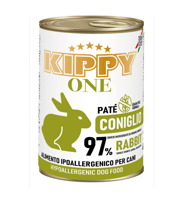 Alimento umido completo monoproteico per cani adulti sottoforma di patè.