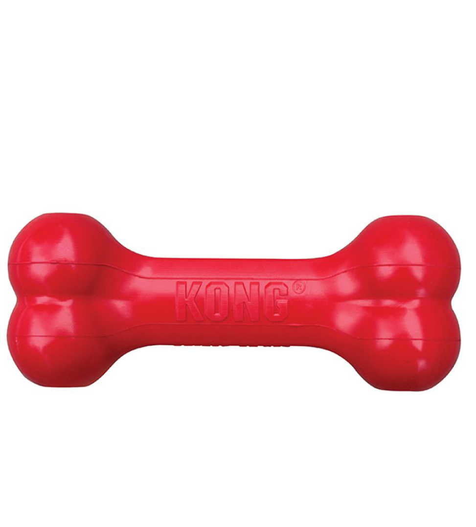 Realizzato con l’esclusiva formula in gomma rossa completamente naturale Kong Classic, quest’osso dispone dei Goodie Grippers brevettati che trasformano questo gioco divertente in una giocosa sfida che eroga premi, che può essere riempito con i croccantini preferiti dal vostro cane. Volete prolungare la sessione di masticazione? Riempitelo con i Kong Snacks e aggiungete un po’ di irresistibile Kong Easy Treat.