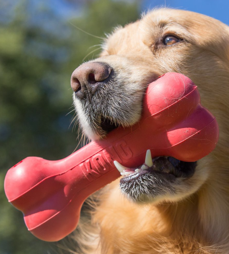 Realizzato con l’esclusiva formula in gomma rossa completamente naturale Kong Classic, quest’osso dispone dei Goodie Grippers brevettati che trasformano questo gioco divertente in una giocosa sfida che eroga premi, che può essere riempito con i croccantini preferiti dal vostro cane. Volete prolungare la sessione di masticazione? Riempitelo con i Kong Snacks e aggiungete un po’ di irresistibile Kong Easy Treat.