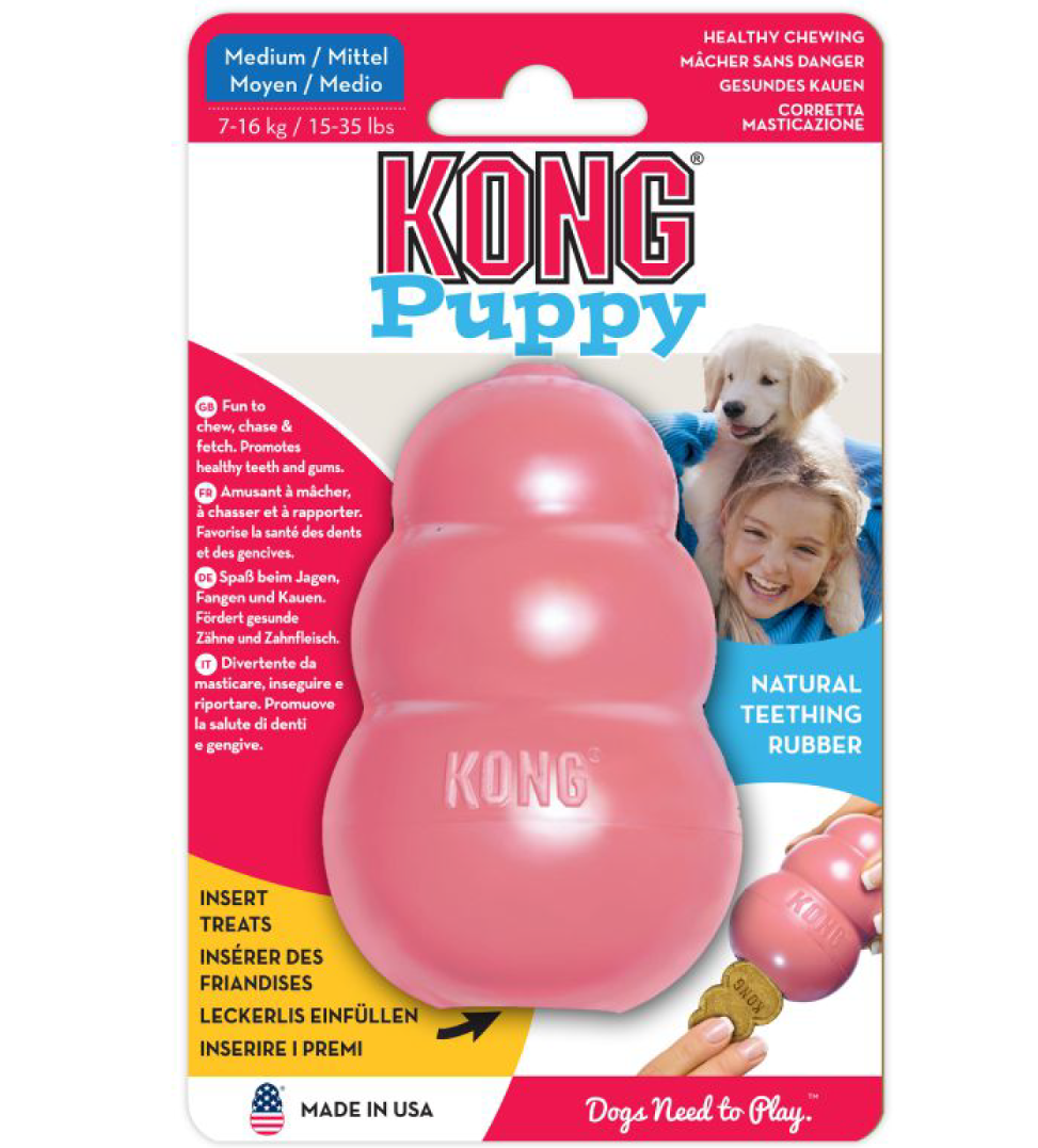 Il gioco per cani Puppy Kong è realizzato su misura per la dentizione da latte dei cuccioli di cane: l’esclusiva formula in gomma completamente naturale lo rende il prodotto più delicato della linea di giochi in gomma Kong.