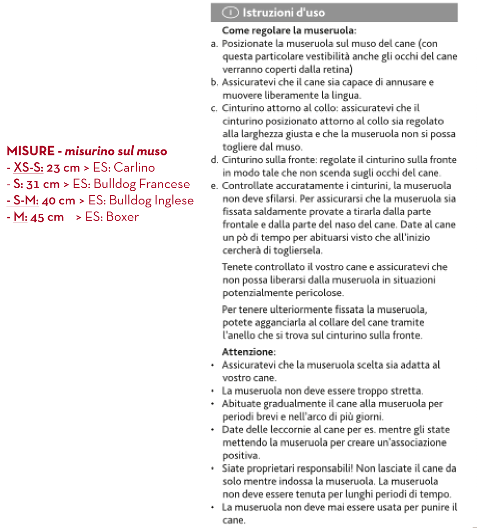 La taglia M ha una misura del cinturino sul muso di 40 cm.