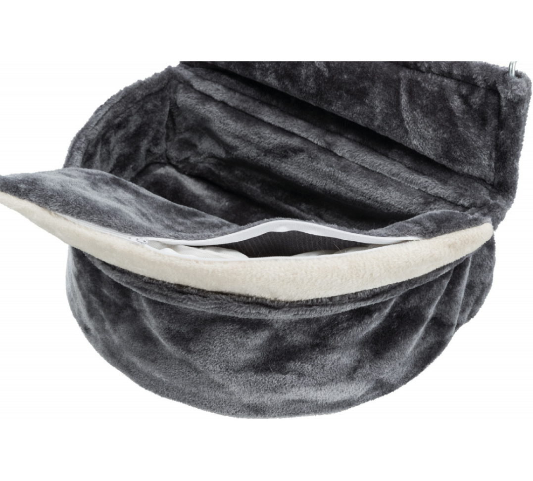 Ha la fodera in peluche, il fondo e le parti posteriori sono imbottite per far stare il gatto comodo.
