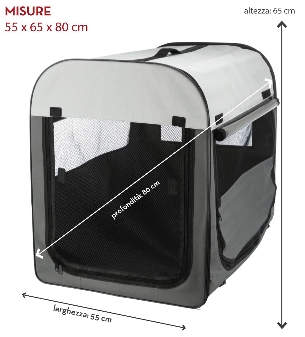 La taglia M ha le seguenti misure: 55x65x80 cm