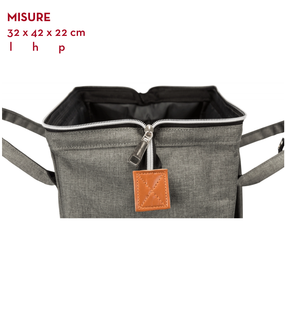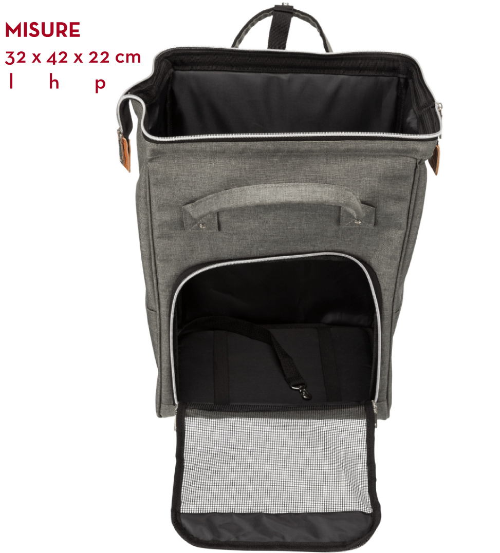 All'interno ha un corto guinzaglio per evitare che il cane salti fuori quando lo si tiene aperto.